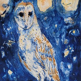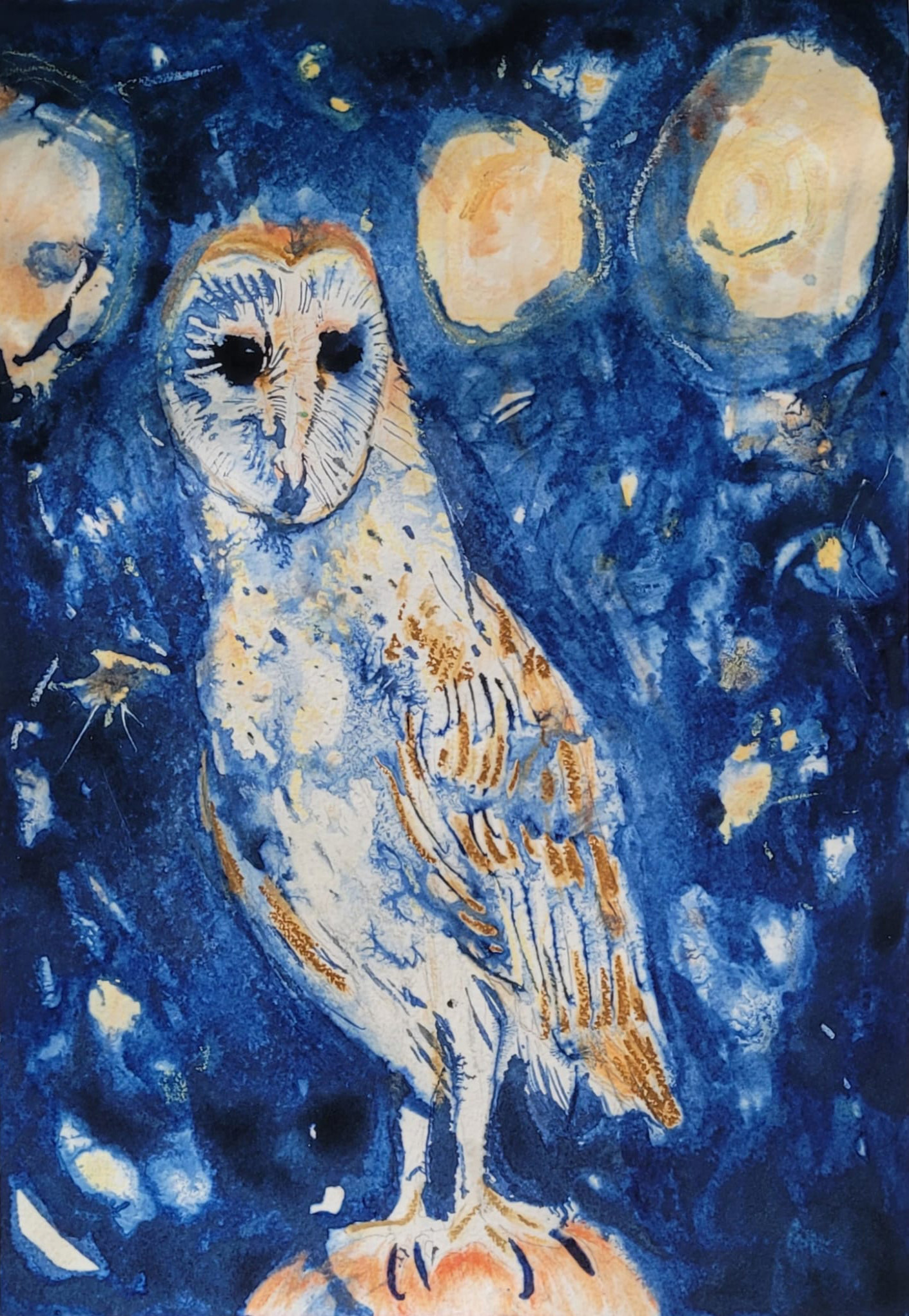 Noga Farchi, Barn Owl, 2025, Oil pastel and ink on paper, 50x34cm
